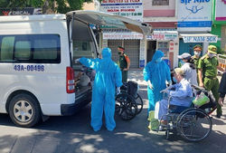 ![]() Trainee of Vietnam FETP short-course participating in COVID-19 investigation at the local quarantine site during their fieldwork (August 2020). Photo by Le Quang – Trainee of Vietnam FETP short-course. | ![]() A field hospital set up inside a sport center in Da Nang city (August 2020) – Photo by Nguyen Dong – VnExpress | ![]() Small traders in Da Nang market comply with social distancing but do not forget to cheer for the healthcare worker in COVID-19 response (August 2020) - Photo from Web portal of Danang city. |