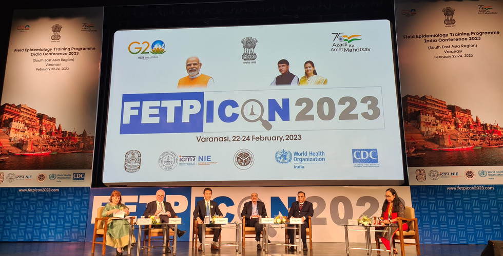 The Field Epidemiology Training Program (FETP) India Conference 2023 – or the FETPICON2023 - was held from February 22 to 24, 2023 at Rudraksh International Cooperation and Convention Centre, Varanasi, Uttar Pradesh, India. The conference was hosted by National Centre for Disease Control (NCDC) – a public health institution providing science-based policy guidance and services to India Ministry of Health and Family Welfare.